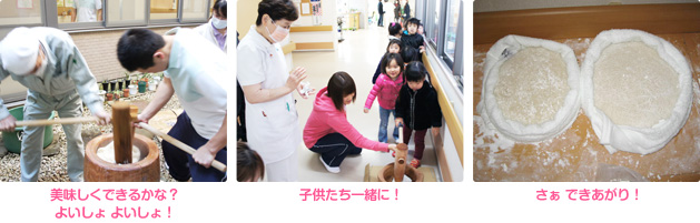 昨年12月26日に、施設中庭にて職員による、お餅つきが行われました。